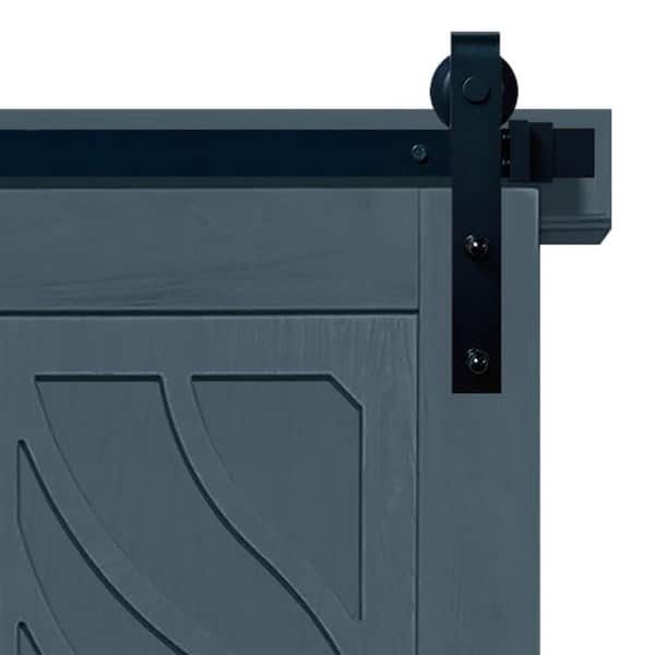 30 in. x 84 in. Zaftig Sway Denim Wood Sliding Barn Door with Hardware Kit in Black