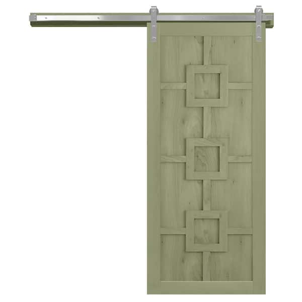 36 in. x 84 in. Mod Squad Rain Tree Wood Sliding Barn Door with Hardware Kit in Stainless Steel