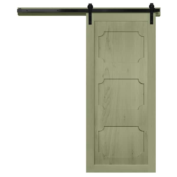 36 in. x 84 in. The Harlow III Rain Tree Wood Sliding Barn Door with Hardware Kit in Black