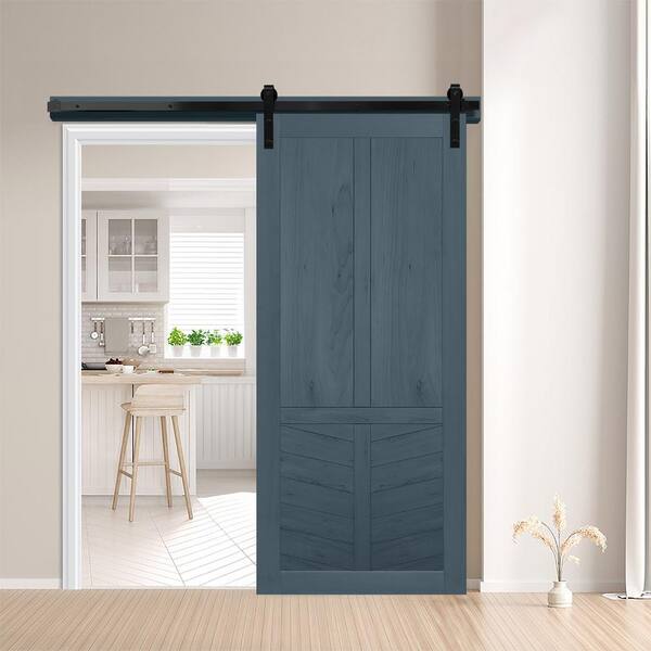 36 in. x 84 in. The Robinhood Denim Wood Sliding Barn Door with Hardware Kit in Black