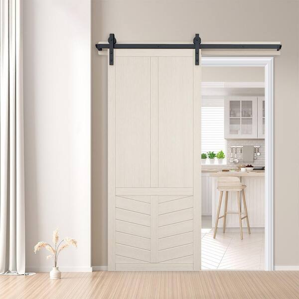 42 in. x 84 in. The Robinhood Parchment Wood Sliding Barn Door with Hardware Kit