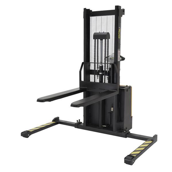 2000 lb. Capacity 62 in. H Stacker with Powered Drive and Powered Lift with Fixed Forks Over Adjustable Support Legs