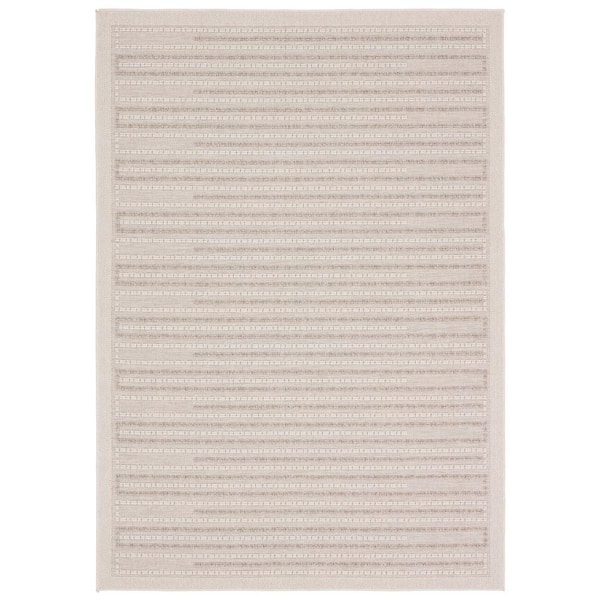 Vibe Theorem Taupe/Cream 8 ft. x 10 ft. Striped Polypropylene Indoor/Outdoor Area Rug