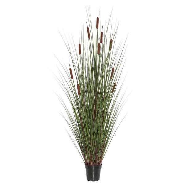 24 in. Artificial Everyday Grass with 5-Cattails Potted