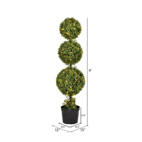 4 ft Artificial Triple Ball Green Boxwood Topiary.