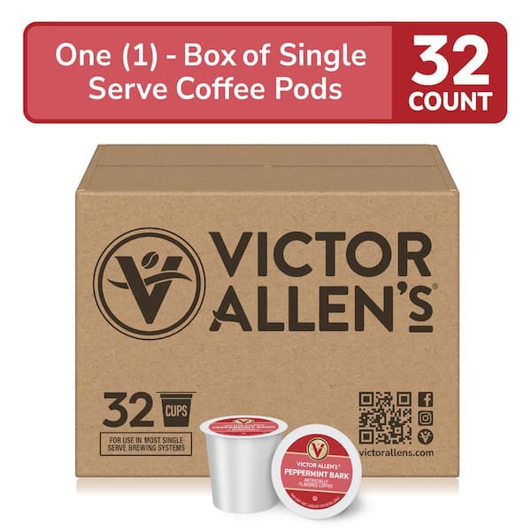 Victor Allen's Coffee, Peppermint Bark, 32 Count, Medium Roast, Single Serve Coffee Pods for Keurig K-Cup Brewers