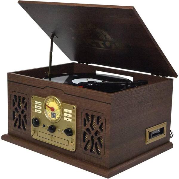 State Bluetooth Turntable Record Player, CD/MP3/Cassette Player, FM Radio and Built-In Stereo Speakers, Espresso