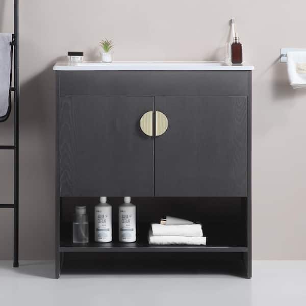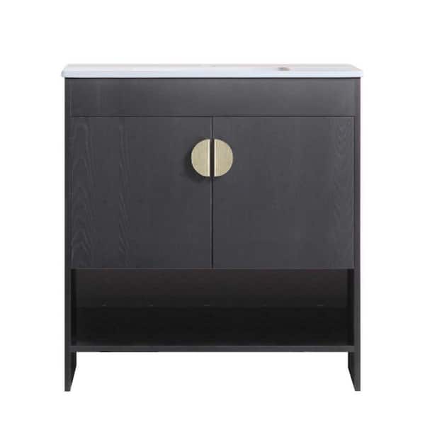 Victoria 30 in. W x 18 in. D x 33 in. H Single Sink Freestanding Solid Wood Bath Vanity in Black and White Ceramic Top