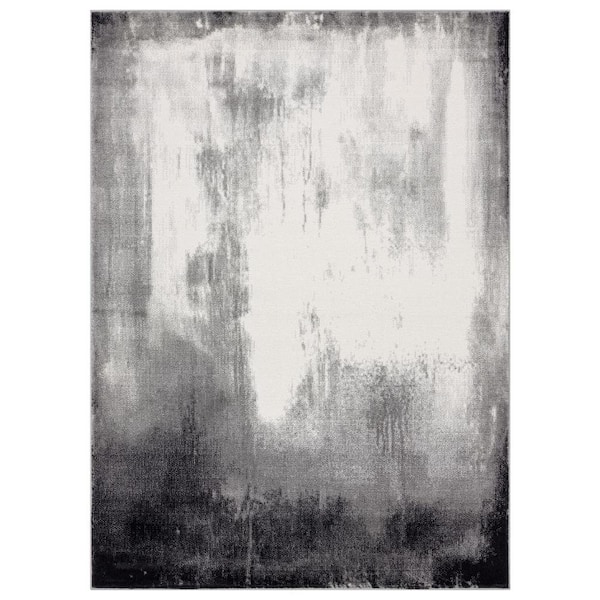 Victoria Collection Gray 5x7 Modern Distressed Abstract Polypropylene Area Rug