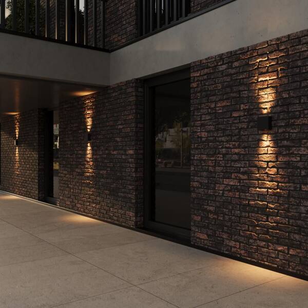 Orion 5.5in Black Outdoor Up/Down Lantern Wall Sconce, Hardwired Integrated LED, 3000K, 1050 Lumens, ETL and cETL