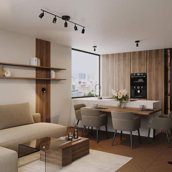 Shura 5-Light Black Integrated LED Track Light with Rotatable Heads, 4 ft. Fixed Track Lighting Kit, 3000k, 2450 Lumens