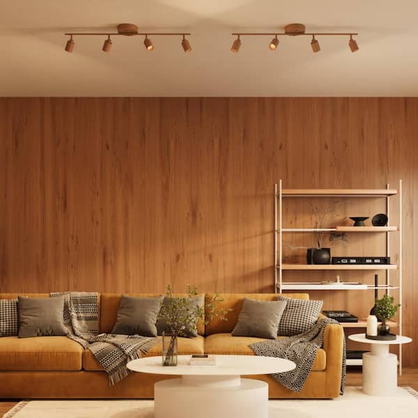 Shura Warm Brown Integrated LED Fixed Track Light Rotatable Cylinder Heads 3 ft. Track Lighting Kit 3000 K 2240 Lumens