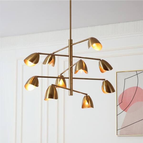 Splay 38 in. W 10-Light Brushed Brass Chandelier, Adjustable Arms and Light Heads - Modern Pendant Chandelier