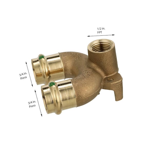 ProPress 3/4 in. Press x 1/2 in. FPT Zero-Lead Bronze 180-Degree Double Drop Elbow