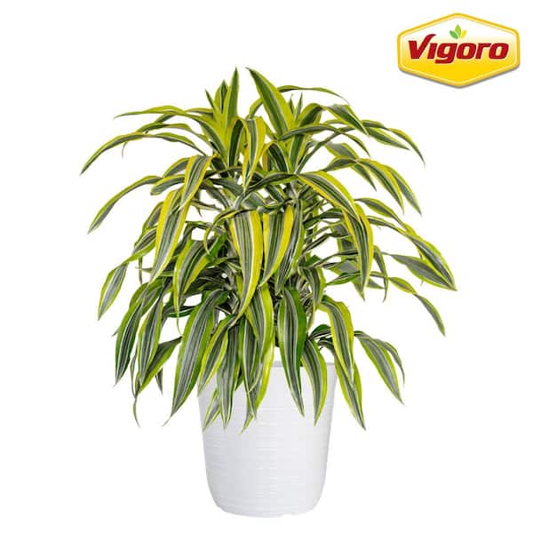 12 in. Vigoro Dracaena Lemon Lime Plant in White Decor Pot
