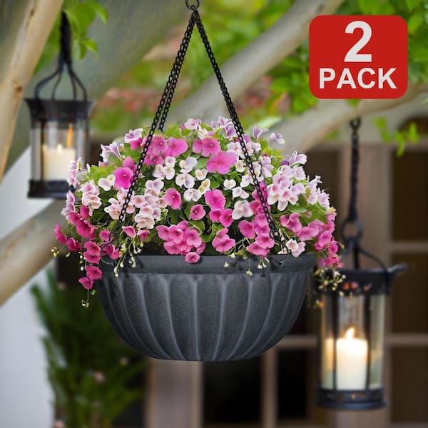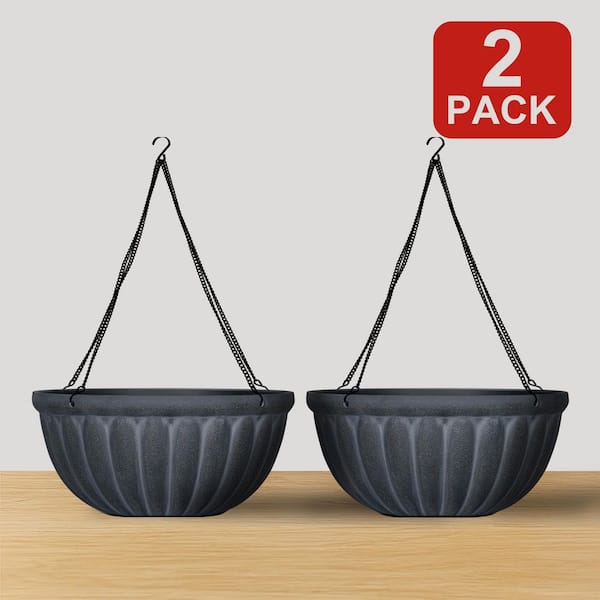 12 in. W x 5.5 in. H Madigan Black Decorative Resin Hanging Basket Planter with Drainage Holes (2-pack)