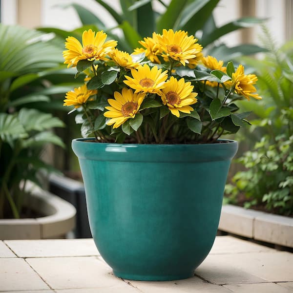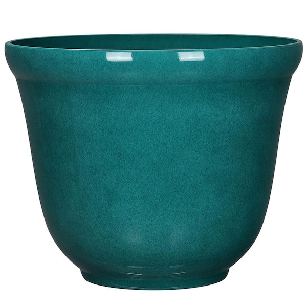 16 in. Felecia Teal Green Glossy Resin Planter (16 in. D x 12.8 in. H) with Drainage Hole
