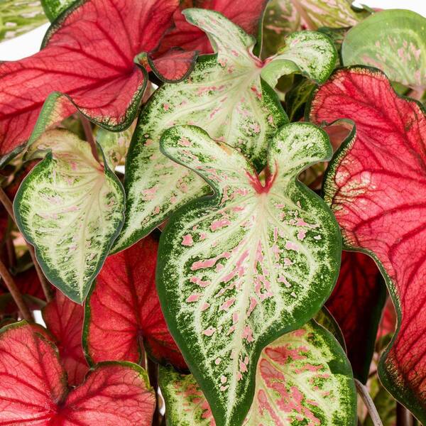 • Mixed-foliaged Caladium great for shaded indoor or outdoor decor