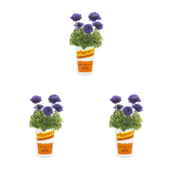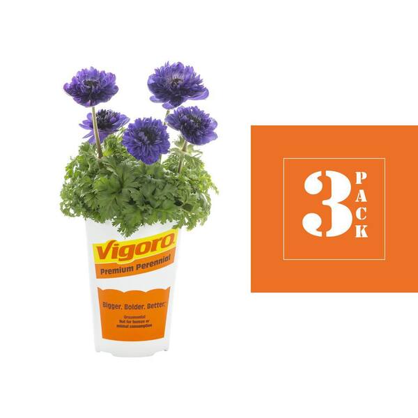 2 qt. Anemone Windflower Harmony Double Blue Perennial Plant (3-Pack)