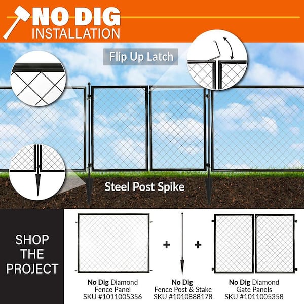 37.3 in. H x 50.2 in. W Black Metal Diamond Mesh Garden Fence Gate