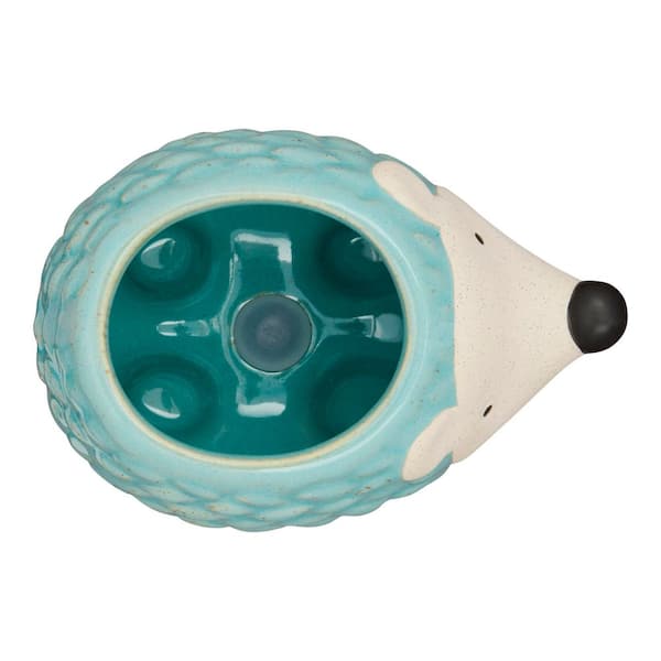 5.5 in. L x 3.9 in. W x 3.5 in. H Hedgehog Blue Ceramic Planter