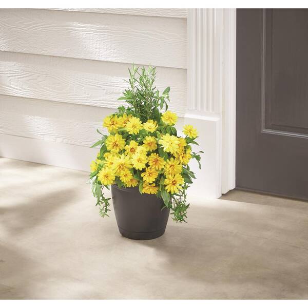 6 in. Mirabelle Small Black Plastic Planter (6 in. D x 5.3 in. H) with Drainage Hole and Attached Saucer