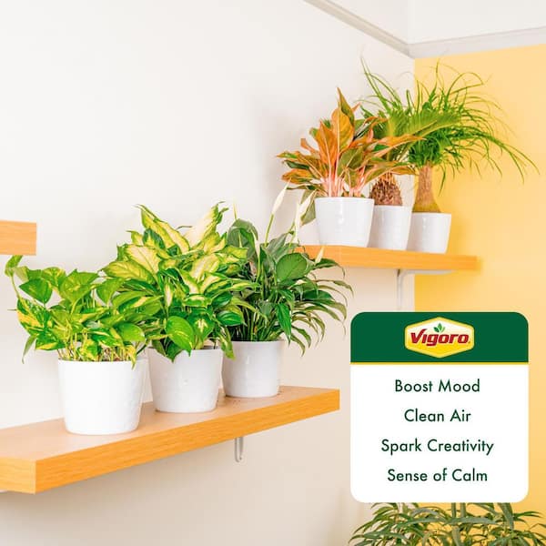 6 in. Peace Lily,Pothos,Sago Palm,Dieffenbachia,Siam and Ponytail Assorted Foliage Plants in White Decor Planter(6-Pack)