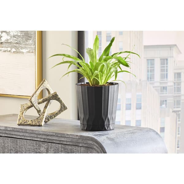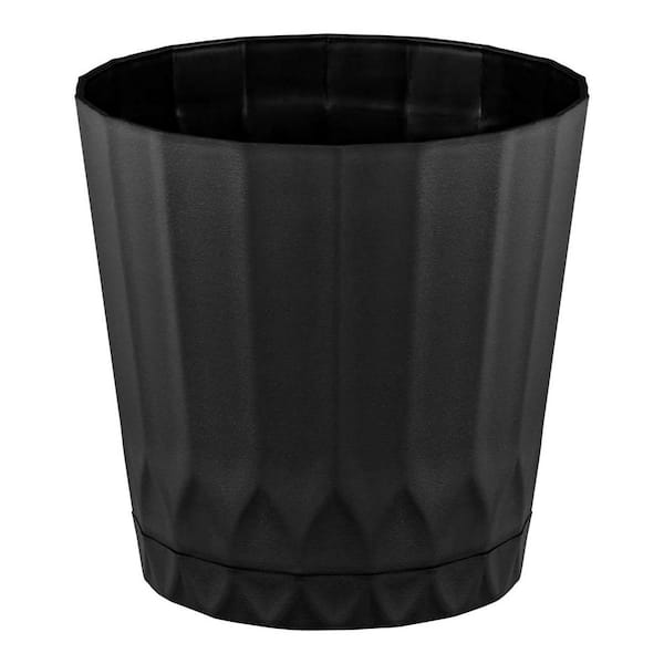 8.4 in. Concord Medium Black Recycled Plastic Planter (8.4 in. D x 8.3 in. H) with Attached Saucer