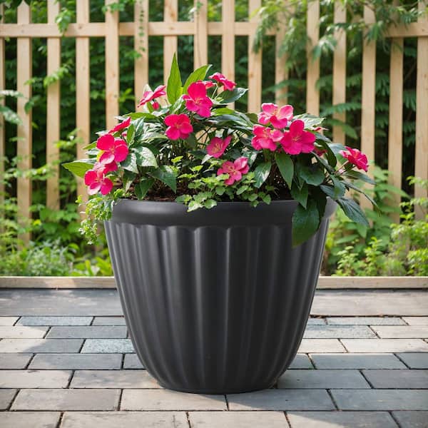 Beck 22 in. Dia x 17.2 in. H Black Resin Indoor/Outdoor Decorative Pot with Drainage Holes