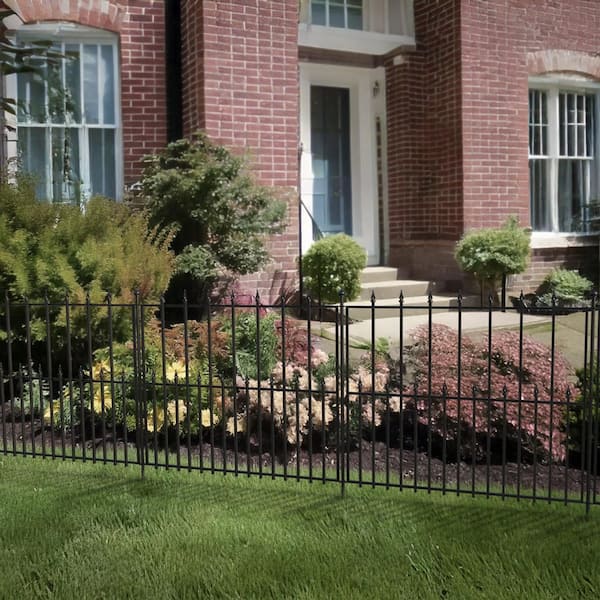 Empire 29 in. H x 36 in. W Black Steel 3-Rail Fence Panel (4-Pack)