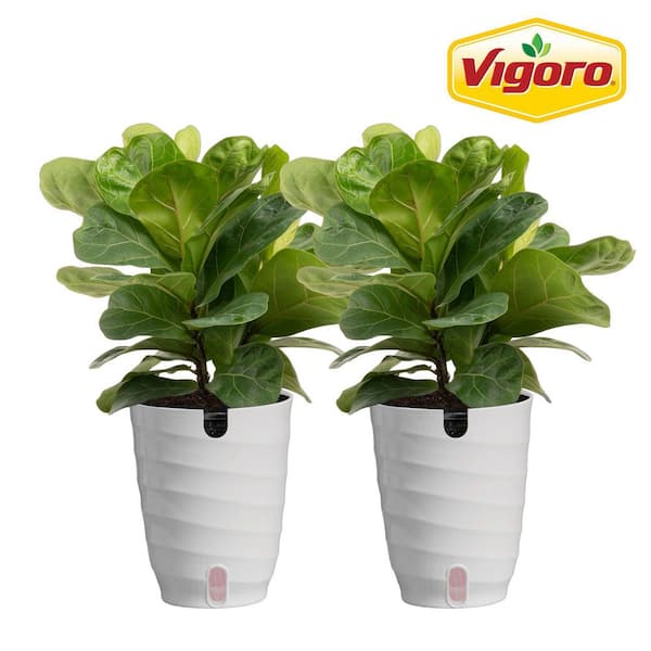 Fiddle Leaf Fig Indoor Plant in 6 in. White Ribbed Plastic Decor Planter, Avg. Shipping Height 10 in. Tall (2-Pack)