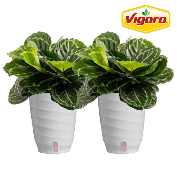Grower's Choice Calathea Indoor Plant in 6 in. White Ribbed Plastic Decor Planter, Avg. Shipping Height 10 in. (2-Pack)