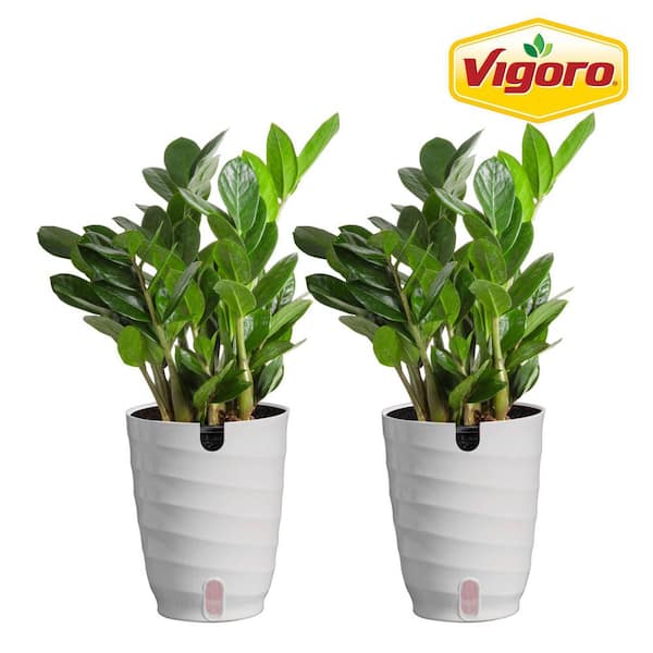 Zamioculcas Zamiifolia ZZ Indoor Plant in 6 in. White Decor Planter, Average Shipping Height 1-2 ft. (2-Pack)