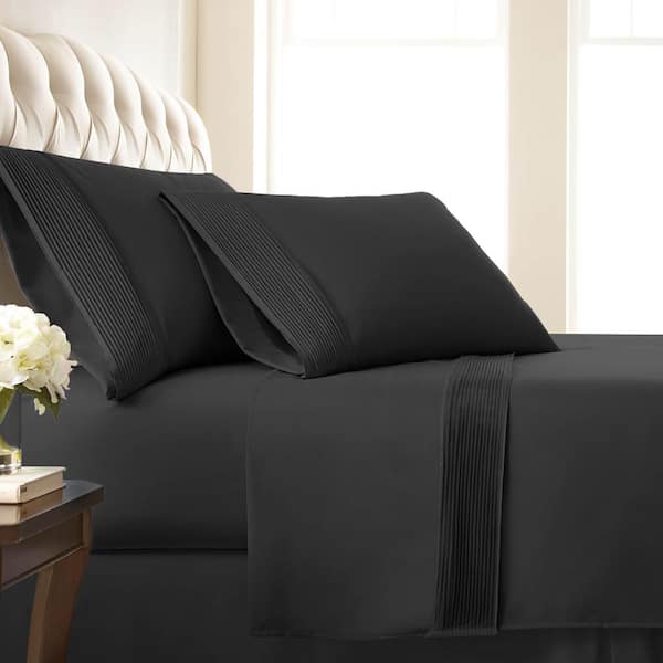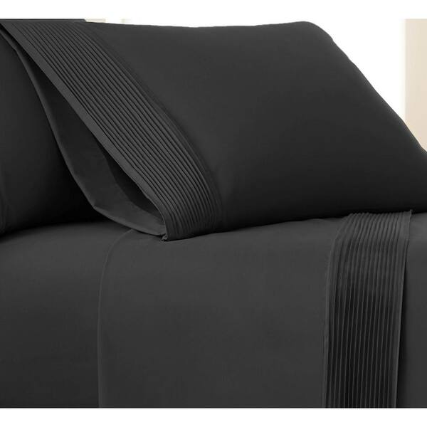 Vilano Pleated 21 in. Extra-Deep Pocket 3-Piece Black Twin XL Microfiber Sheet Set