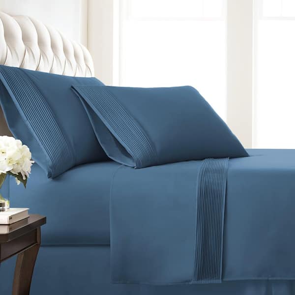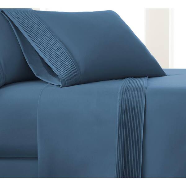 Vilano Pleated 21 in. Extra-Deep Pocket 4-Piece Coronet Blue California King Microfiber Sheet Set