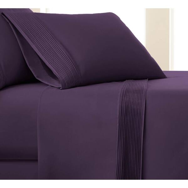 Vilano Pleated 21 in. Extra-Deep Pocket 5-Piece Purple Split King Microfiber Sheet Set