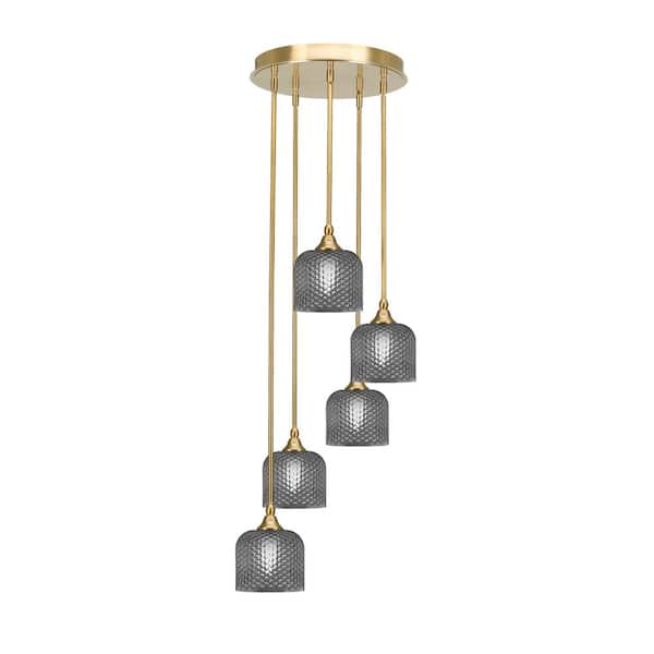 Villa 15.25 in. 5-Light New Age Brass Cluster Pendant Light with 6 in. Smoke Textured Glass Shades, no bulbs included