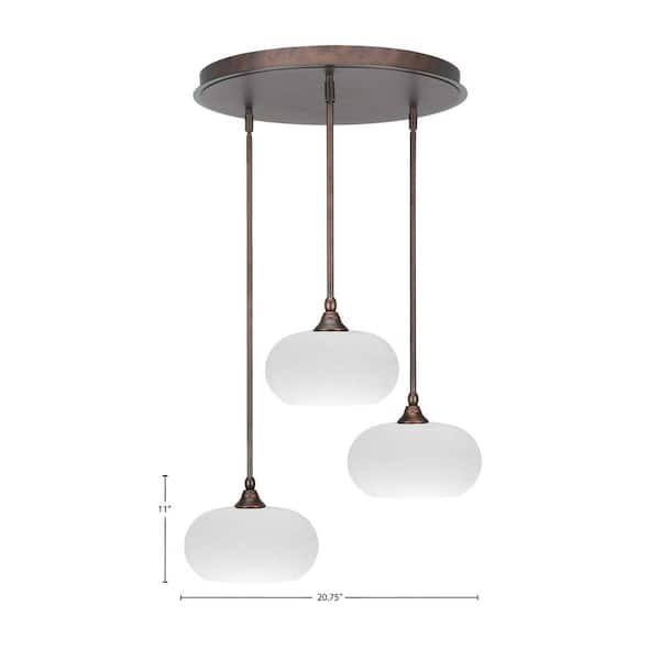 Villa 3 Light Bronze Pendant, Cluster Pendant Light with 10 in. White Muslin Glass Shades, No Bulbs Included