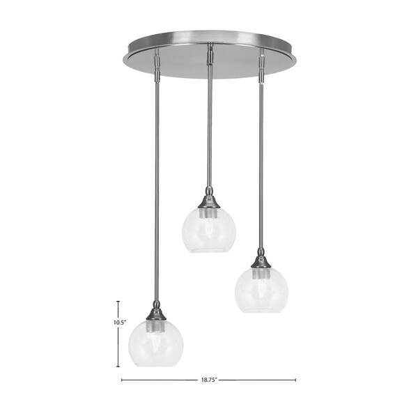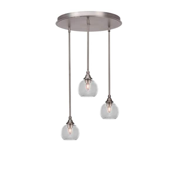 Villa 3 Light Brushed Nickel, Cluster Pendant Light with 5.75 in. Clear Bubble Glass Shades, No Bulbs Included