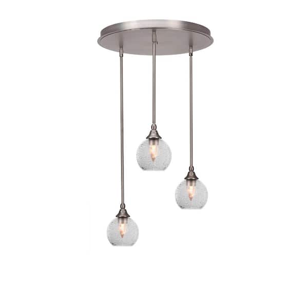 Villa 3 Light Brushed Nickel, Cluster Pendant Light with 5.75 in. Smoke Bubble Glass Shades, No Bulbs Included