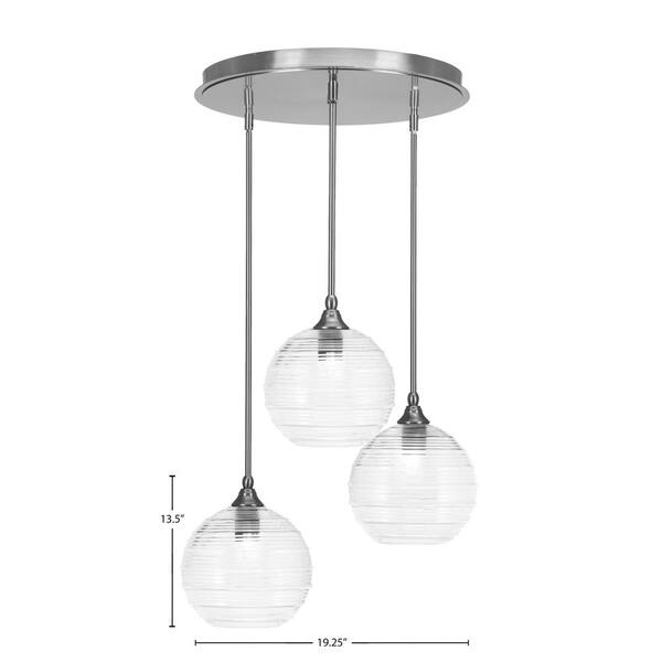 Villa 3 Light Brushed Nickel, Cluster Pendant Light with 7 in. Smoke Textured Glass Shades, No Bulbs Included