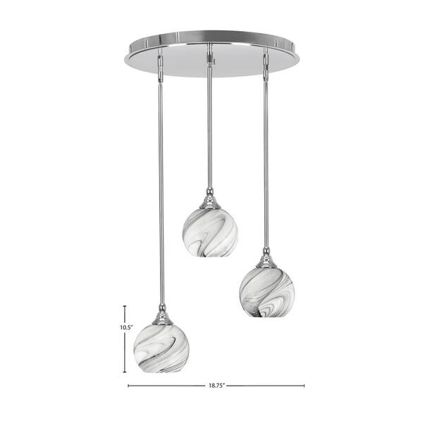 Villa 3 Light Chrome Pendant, Cluster Pendant Light with 5.75 in. Onyx Swirl Glass Shades, No Bulbs Included