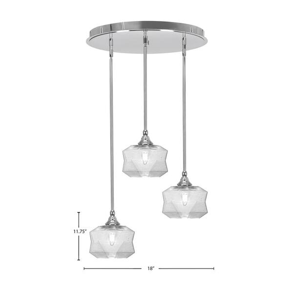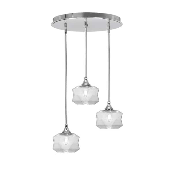 Villa 3 Light Chrome Pendant, Cluster Pendant Light with 8.75 in. Smoke Glass Shades, No Bulbs Included