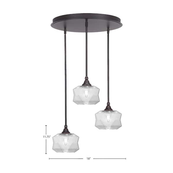 Villa 3 Light Dark Granite Pendant, Cluster Pendant Light with 8.75 in. Clear Bubble Glass Shades, No Bulbs Included