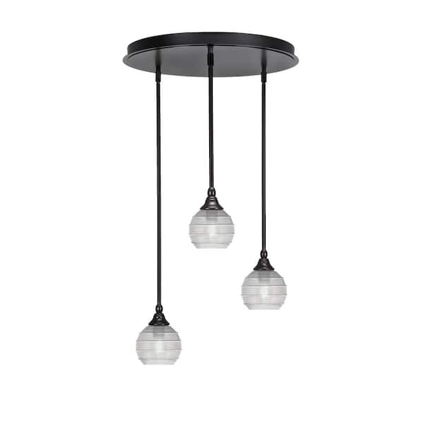 Villa 3 Light Espresso Pendant, Cluster Pendant Light with 6 in. Clear Ribbed Glass Shades, No bulb Included