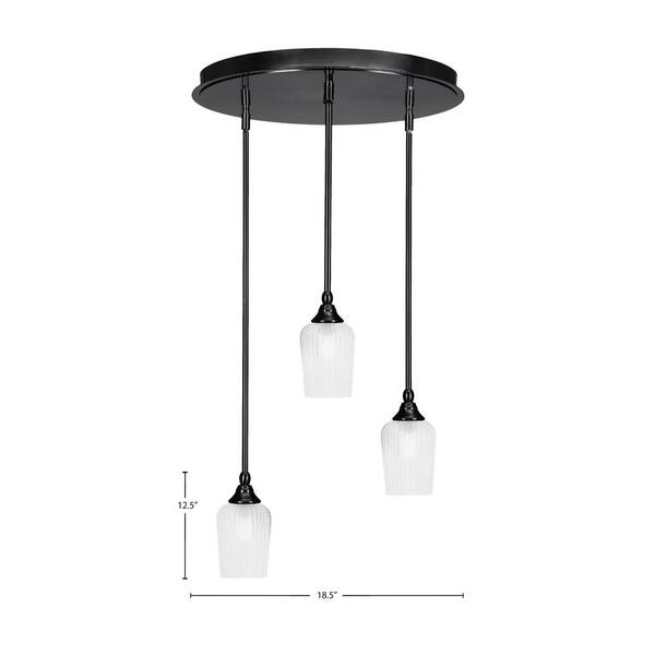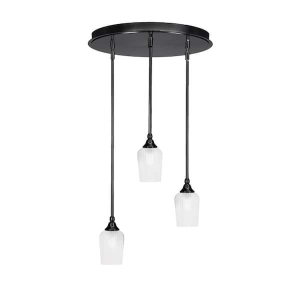 Villa 3 Light Matte Black Pendant, Cluster Pendant Light with 5 in. Clear Textured Glass Shades, No bulb Included