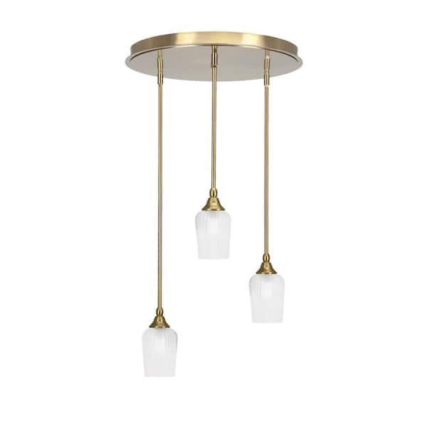 Villa 3 Light New Age Brass Pendant, Cluster Pendant Light with 5 in. Clear Textured Glass Shades, No bulb Included