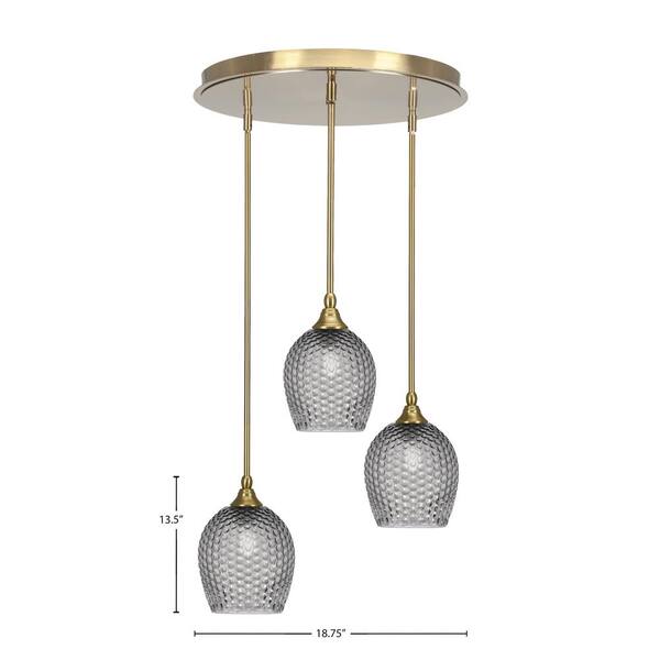 Villa 3 Light New Age Brass Pendant, Cluster Pendant Light with 7.5 in. Smoke Textured Glass Shades, No bulb Included