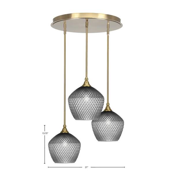Villa 3 Light New Age Brass Pendant, Cluster Pendant Light with 9 in. Smoke Textured Glass Shades, No bulb Included