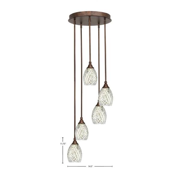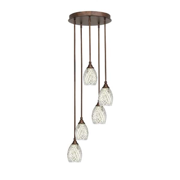 Villa 5 Light Bronze Pendant, Cluster Pendant Light with 5 in. Natural Fusion Glass Shades, No Bulbs Included
